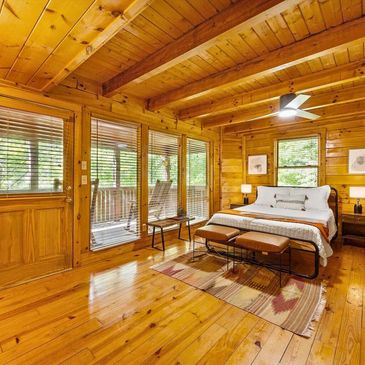 Retreat to the master suite’s private jacuzzi tub — a quiet, serene space designed for pure relaxation after a day in the Smokies.enjoyable as possible.